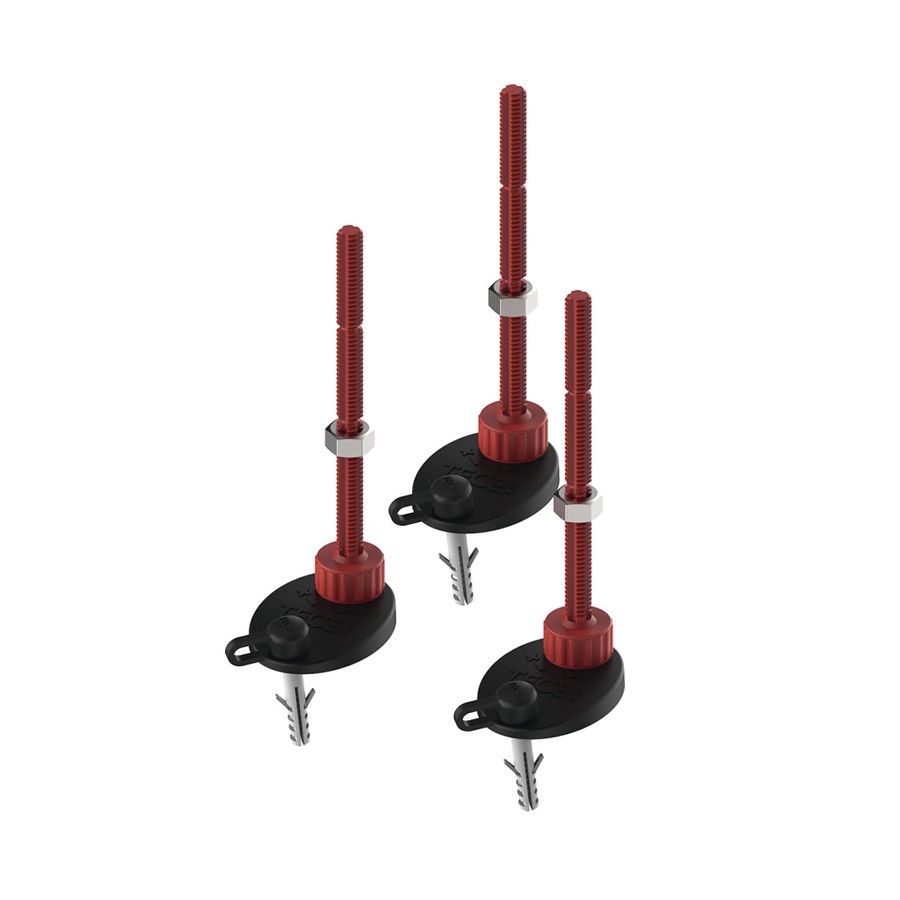 Stopki montażowe do syfonu odpływowego TECEdrainprofile „standard” i „niskiego” do łatwej regulacji wysokości i wypoziomowania podczas montażu na stropie. Zakres regulacji dla syfonu „standard”: 95-194 mm, oraz dla syfonu "niskiego": 65-164 mm (od dolnej krawędzi stopki do górnej krawędzi odpływu lub jastrychu).Składa się z: