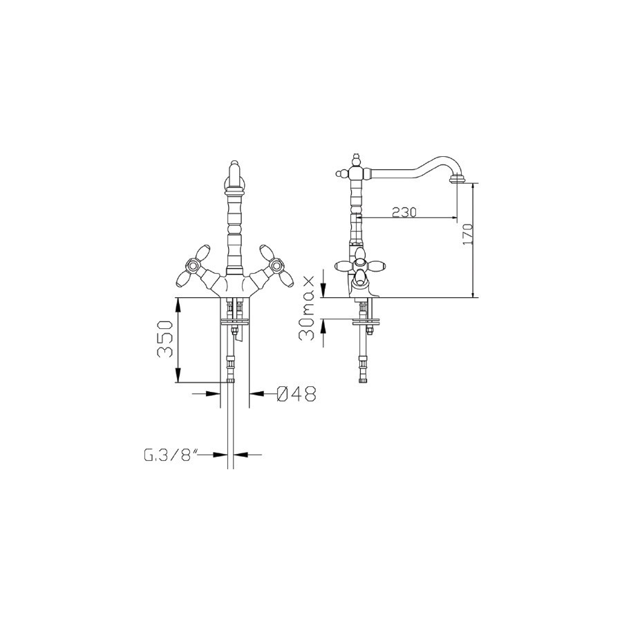 Opis produktu Demm Retro Victorian bateria kuchenna dwuuchwytowa retro stare złoto 2431V/BR