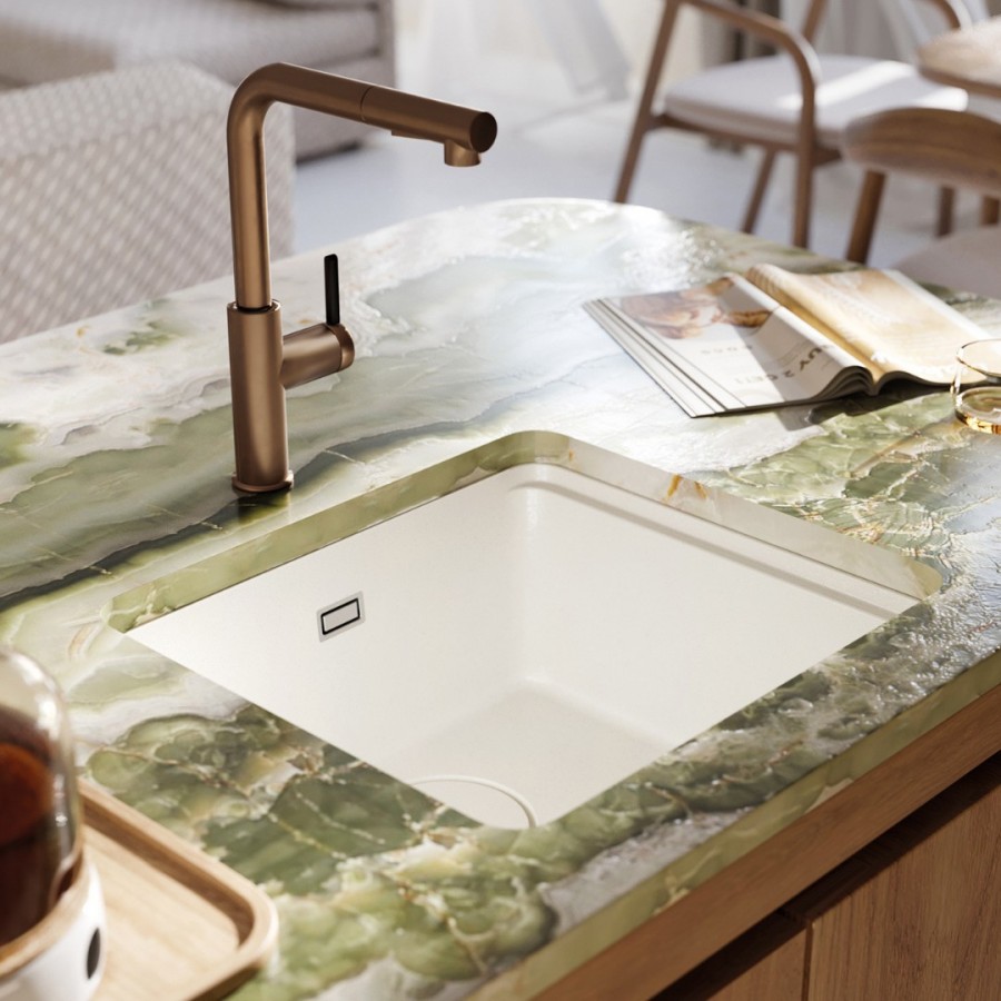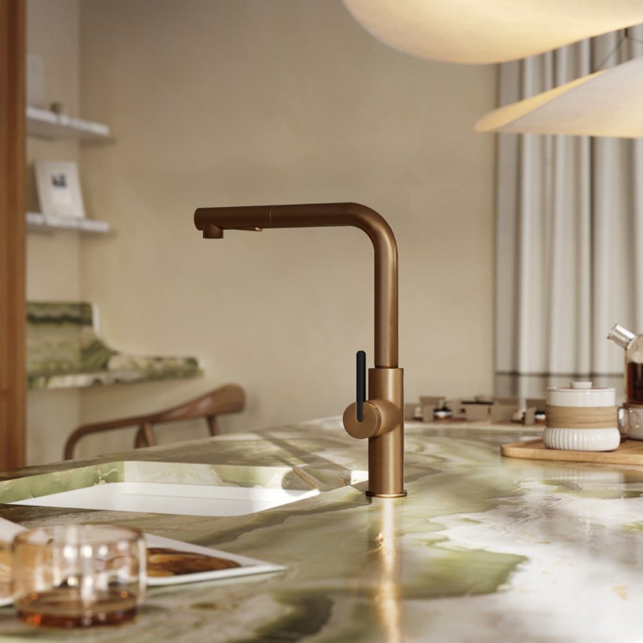 Opis produktu Deante Momi bateria kuchenna z wyciąganą wylewką brąz szczotkowany BKM_C73M