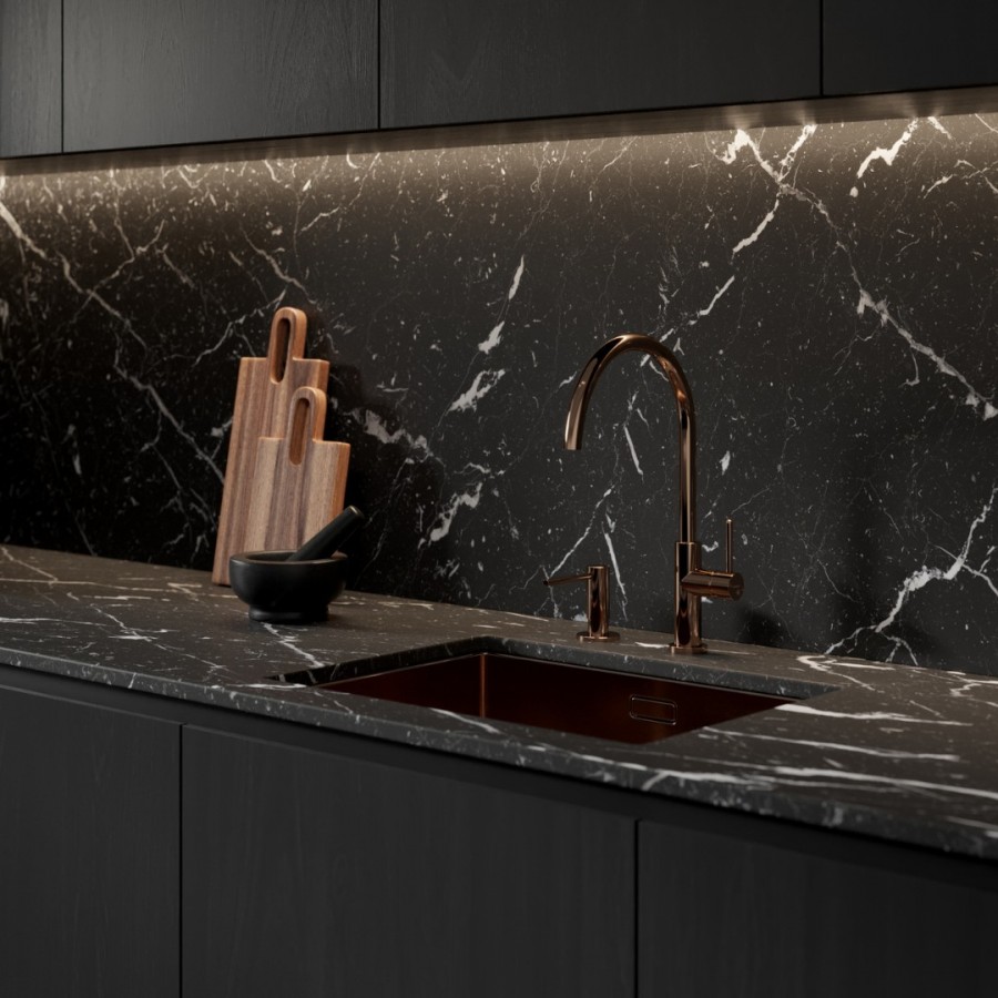 Miedź jest szlachetnym wykończeniem o ciepłej czerwonobrązowej barwie i idealnie gładkiej, lśniącej powierzchni. Powłoka została wykonana w zaawansowanej technologii PVD.