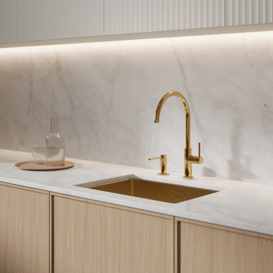 Złoto jest szlachetnym wykończeniem o eleganckim, jasnym odcieniu i idealnie gładkiej, lśniącej powierzchni. Powłoka została wykonana w zaawansowanej technologii PVD.