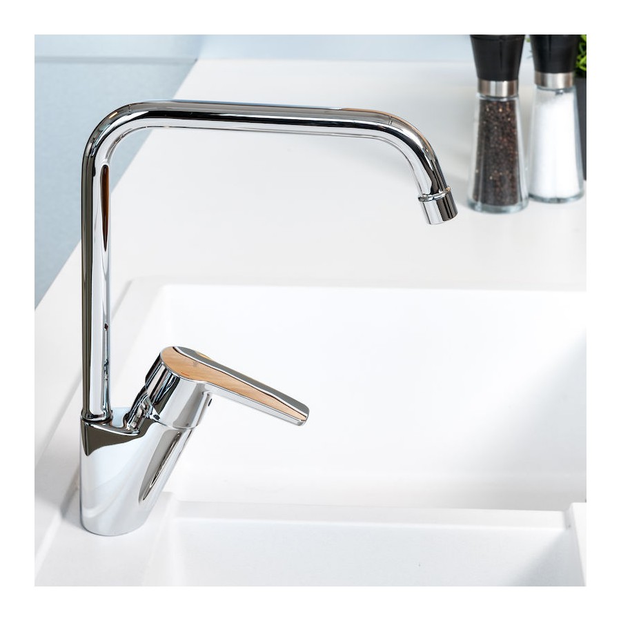 - wylewka obrotowa, możliwość ograniczenia kąta obrotu. Kąt obrotu wylewki ustawiony jest fabrycznie na 120° (można zmienić blokadę na 60°)