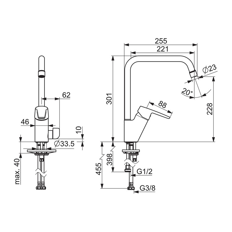 - zakres obrotu wylewki: 120° (60°)
