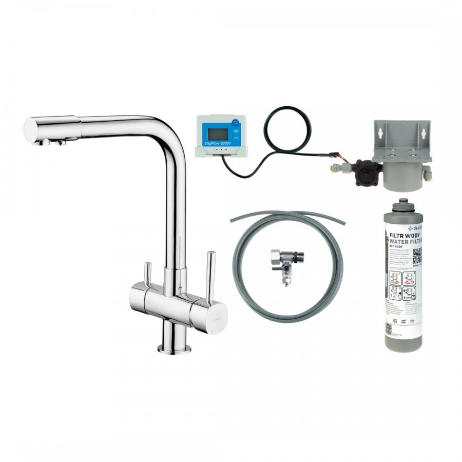 Opis produktu Deante Aster bateria kuchenna stojąca z wyciąganą wylewką z zestawem do filtracji wody chrom BCHF065M
