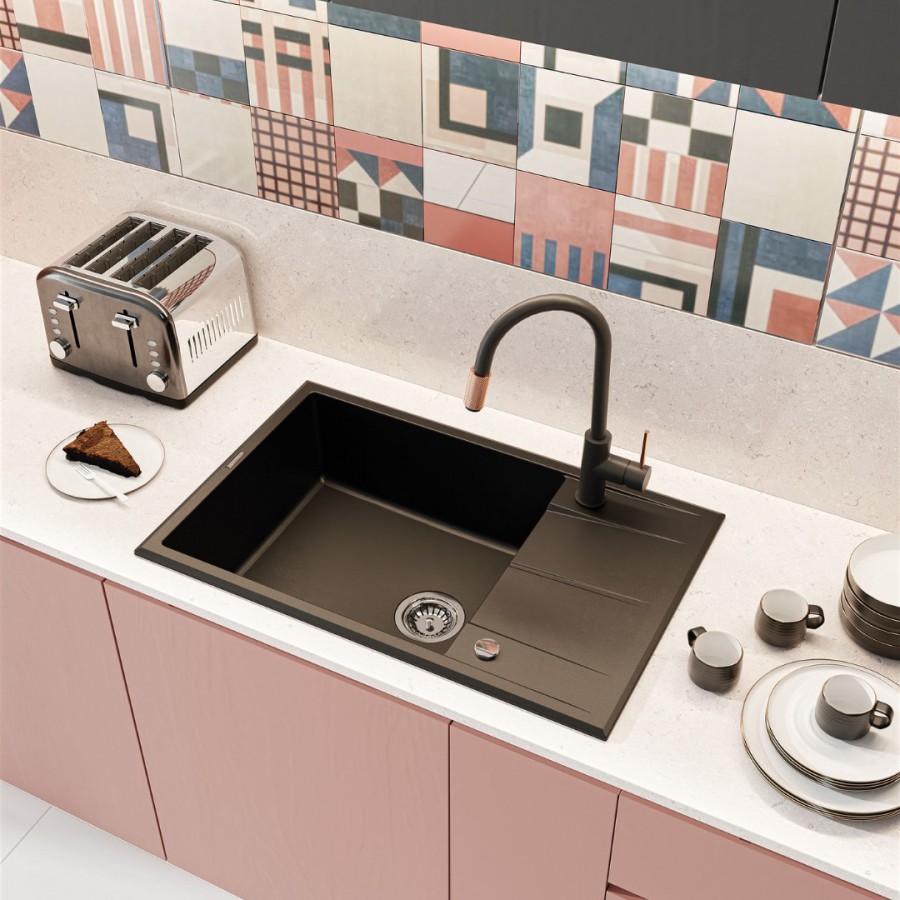 Opis produktu Deante Aster bateria zlewozmywakowa z podłączeniem do filtra wody czarny/miedź BCA B64M
