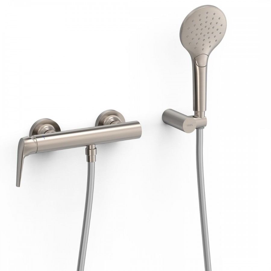 Opis produktu Tres Fuji bateria bateria prysznicowa ścienna z zestawem natryskowym stal 28116701AC