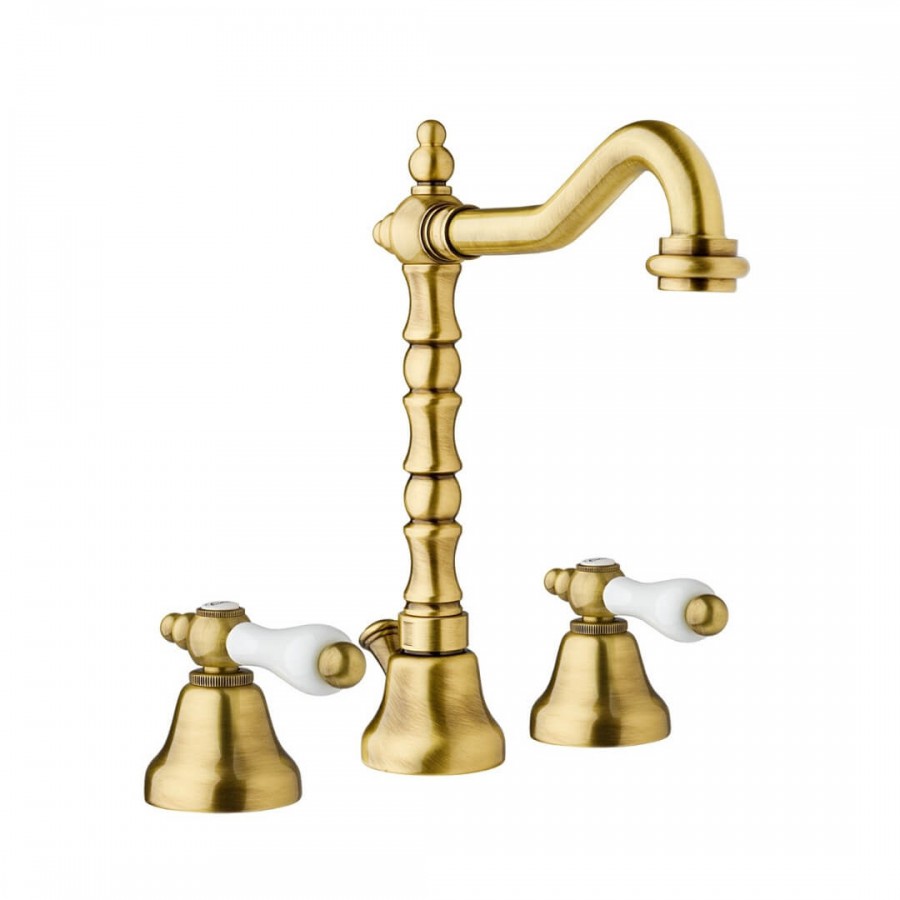 Giulini Giovanni Praga bateria umywalkowa 3 otworowa retro stare złoto 7512BR