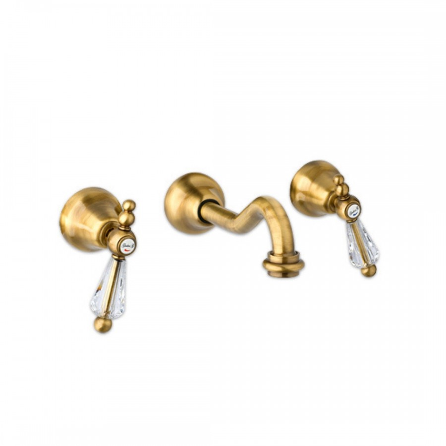 Opis produktu Giulini Giovanni Praga bateria umywalkowa ścienna stare złoto - uchwyty przezroczyste Swarovski 7522BR/S