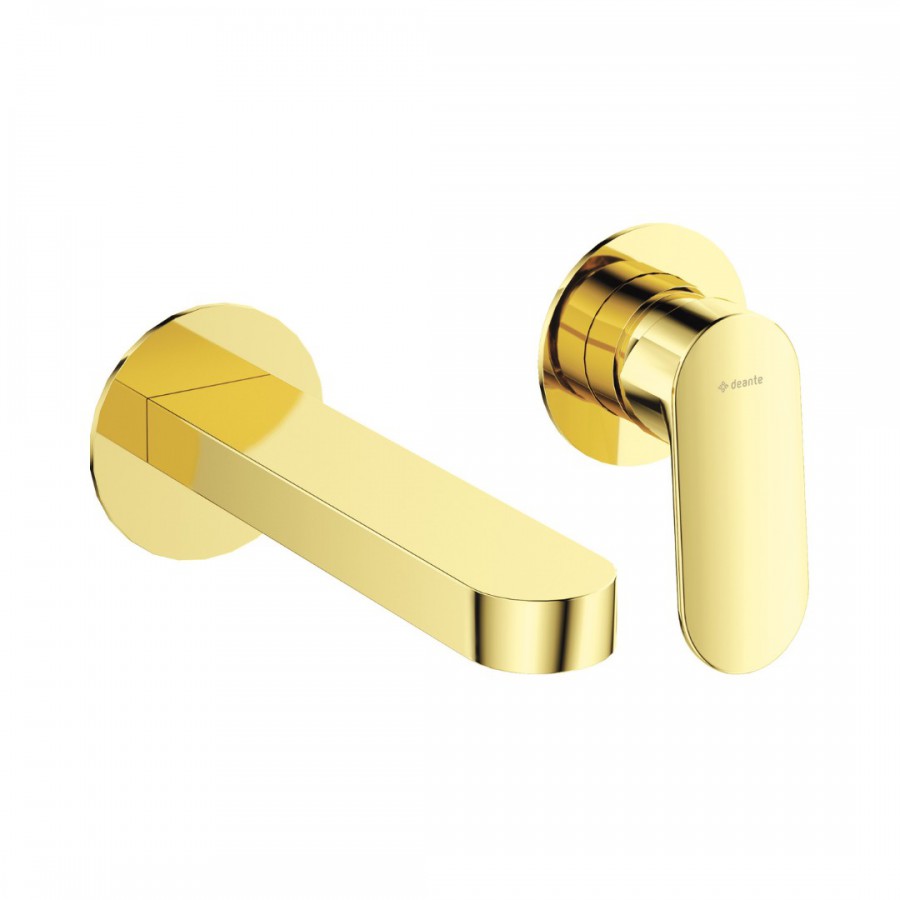 Opis produktu Deante Alpinia bateria umywalkowa 2-otworowa podtynkowa wylewka 15,3 cm złoty połysk BGA_Z55L