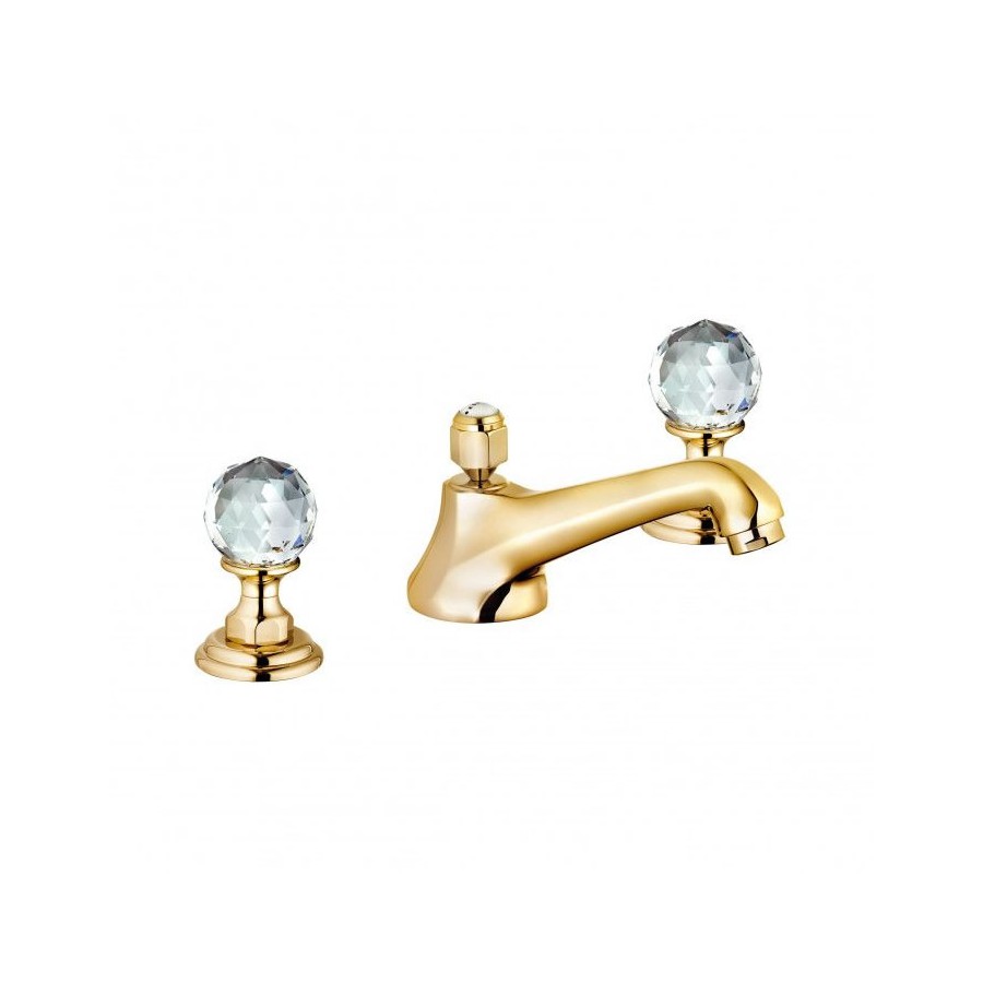 Opis produktu Kludi Adlon bateria umywalkowa pozłacana uchwyty przezroczyste Swarovski 5104645G4