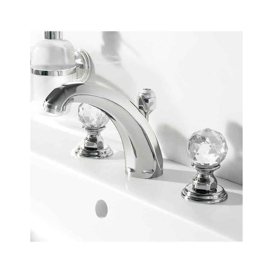 Opis produktu Kludi Adlon bateria umywalkowa uchwyty przezroczyste Swarovski 5104305G5