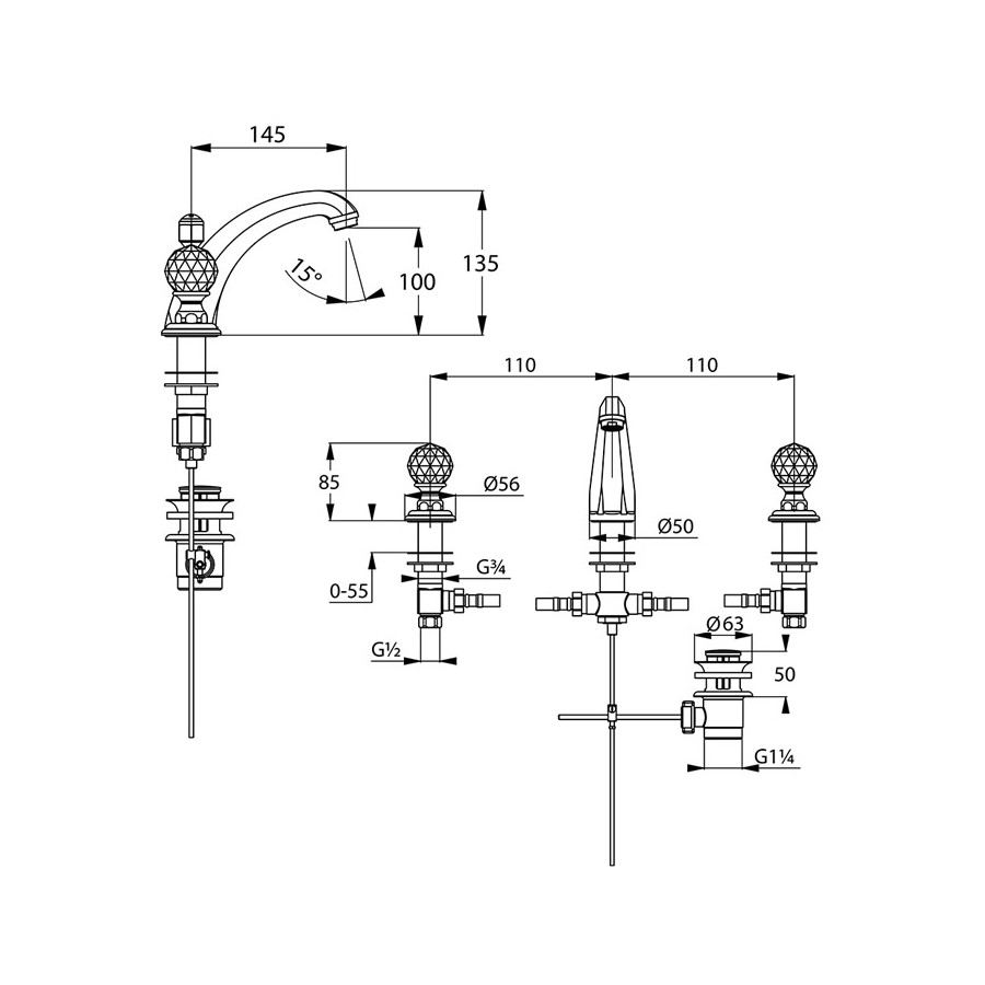 - bateria umywalkowa DN 15