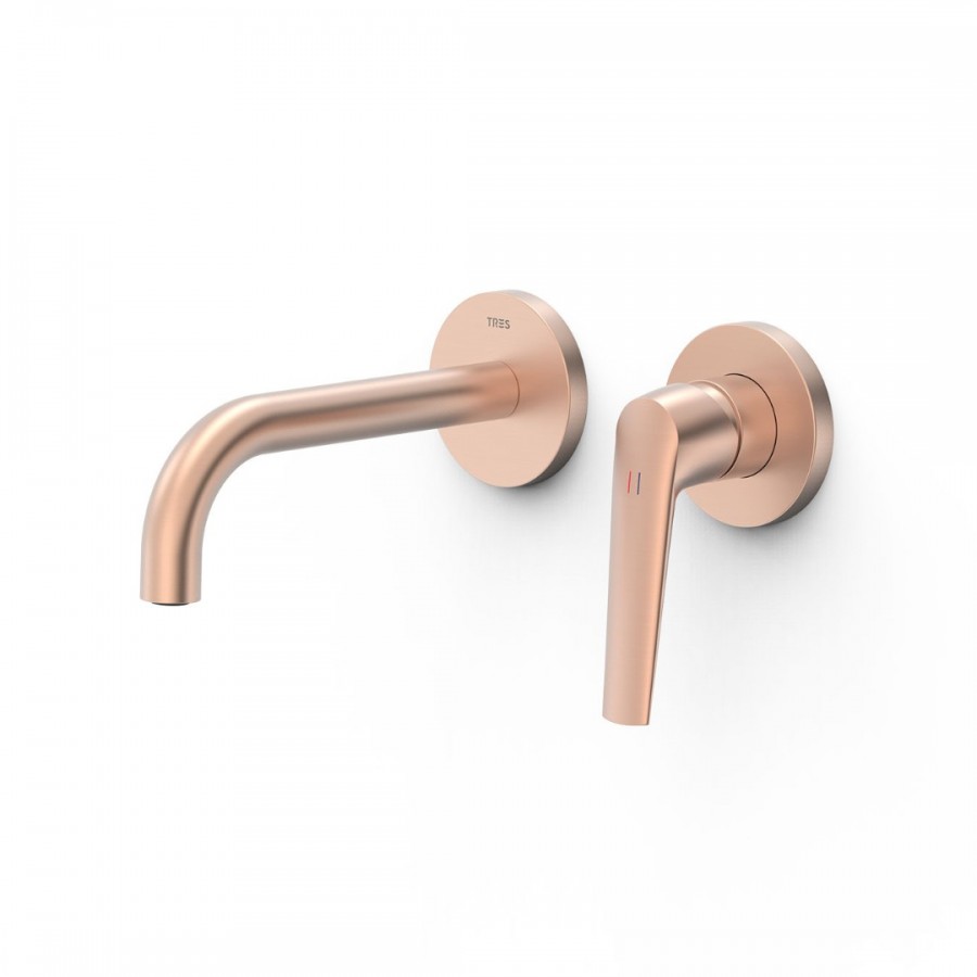 Opis produktu Tres Fuji bateria umywalkowa podtynkowa wylewka 17,7 cm złoto różowe mat 28130021OPM