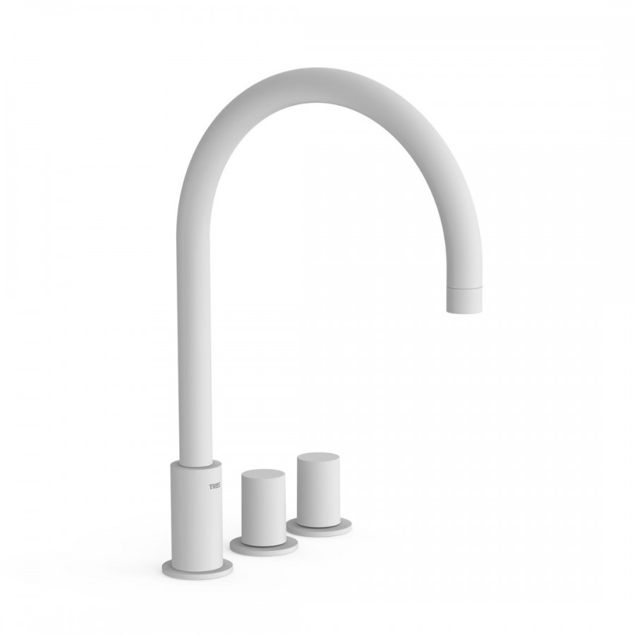 Opis produktu Tres Study Exclusive bateria umywalkowa stojąca wysoka 3-otworowa biały mat 06110501BM