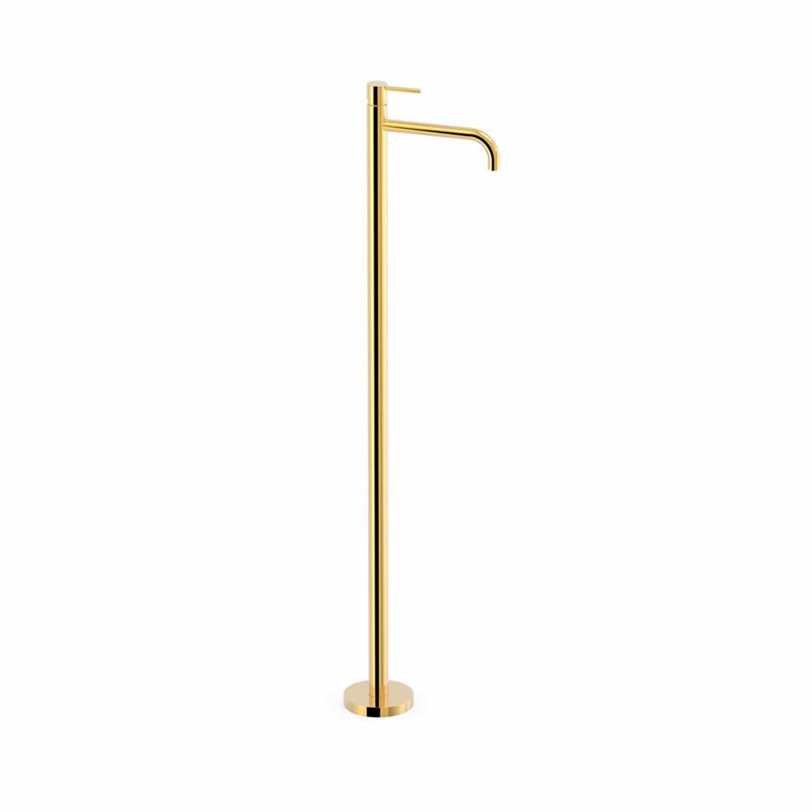 Bateria umywalkowa wolnostojąca, do montażu jednootworowego. Do baterii dołączono element podtynkowy. Bateria z jednym uchwytem - dźwiginią, posiaada ceramiczną głowicę i wylewkę z perlatorem. Bez zestawu odpływowego.Tres Study Exclusive bateria umywalkowa wolnostojąca złota 26285301OR