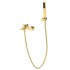 Ścienna bateria wannowa do montażu dwuotworowego z jednym uchwytem. W komplecie z punktowym zestawem natryskowym.Besco Aspira bateria wannowa złota