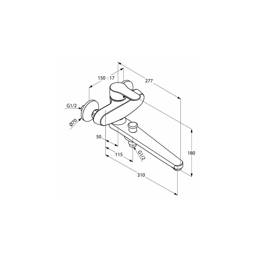 Jednouchwytowa bateria wannowo-natryskowa DN 15- uchwyt prosty