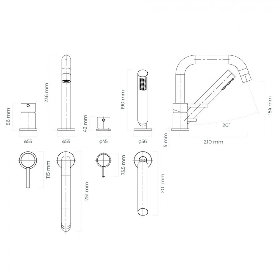 Opis produktu Oltens Molle bateria wannowa 4-otworowa złoto szczotkowane 34200810