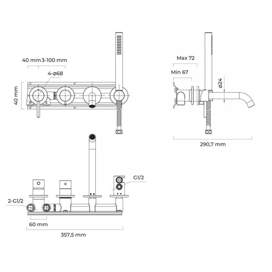 Opis produktu Oltens Molle bateria wannowa podtynkowa 4-otworowa złoty połysk 34105800