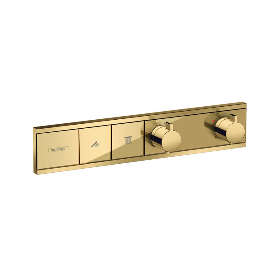 Opis produktu Hansgrohe RainSelect bateria wannowo-prysznicowa podtynkowa termostatyczna złoty optyczny polerowany 15380990