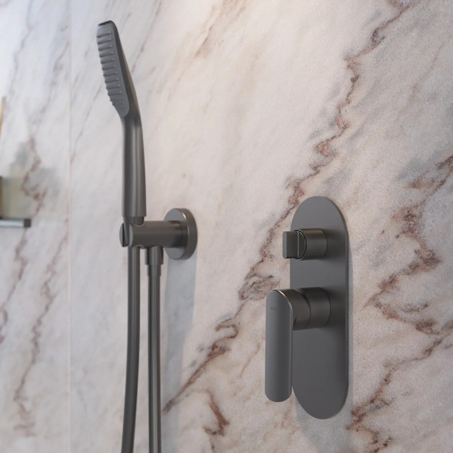 Opis produktu Vedo Aletta Grafite bateria wannowo-prysznicowa podtynkowa 3 wyjścia grafit szczotkowany VBA5017/SG