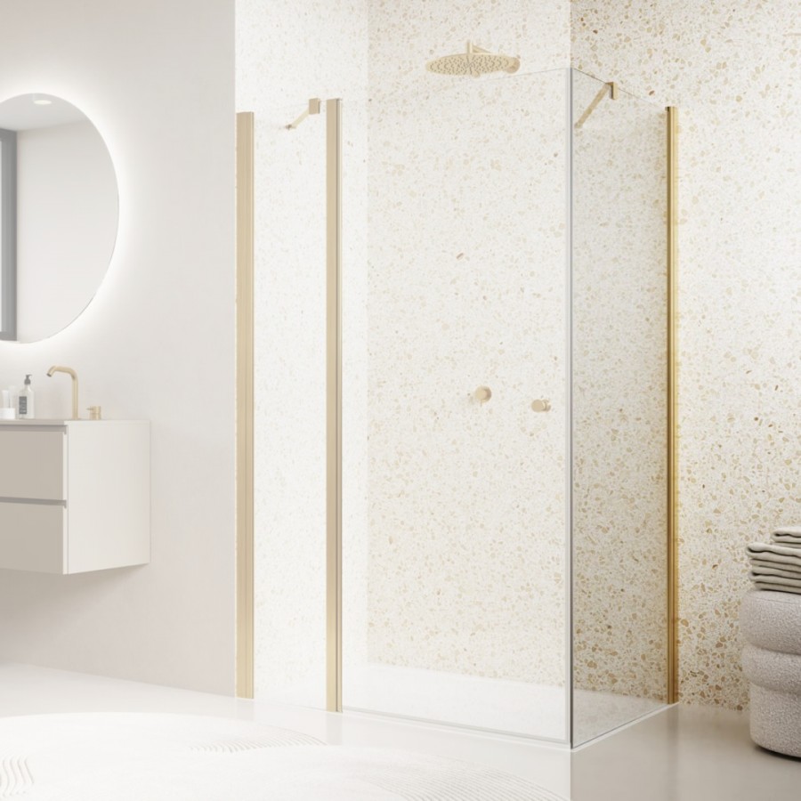 Opis produktu Sanswiss Solino ścianka prysznicowa 90 cm boczna do drzwi złoto szczotkowane SOLT109001307
