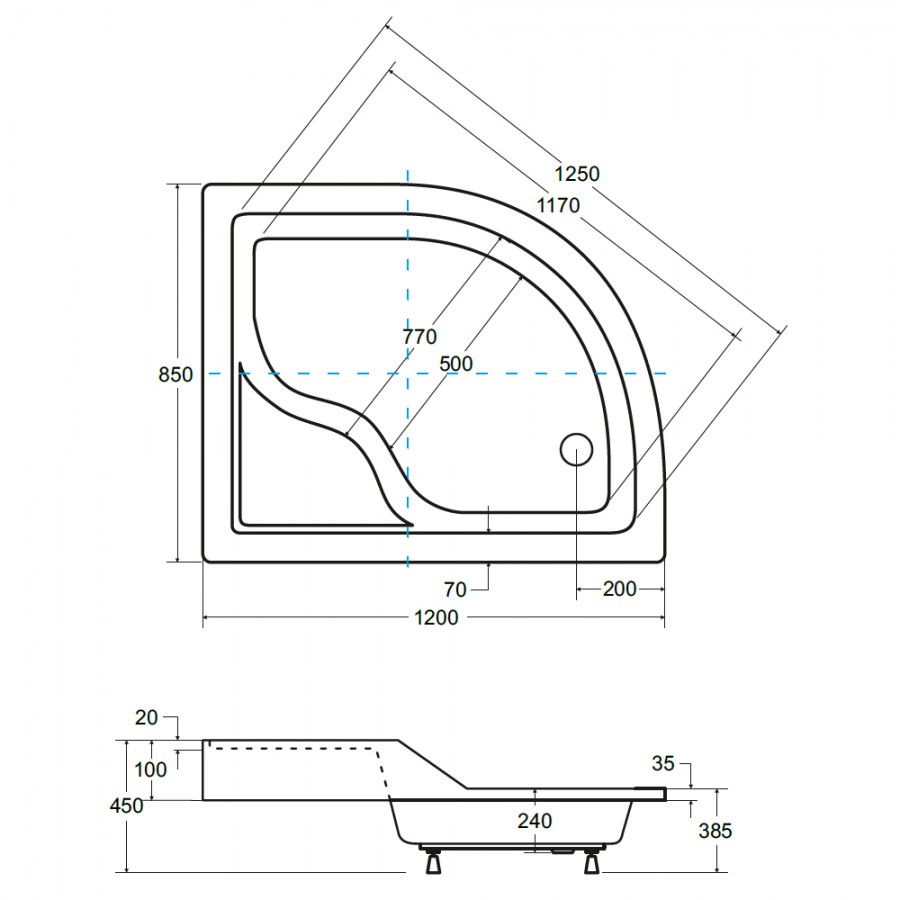 Dane techniczne:- rodzaj produktu: brodzik asymetryczny