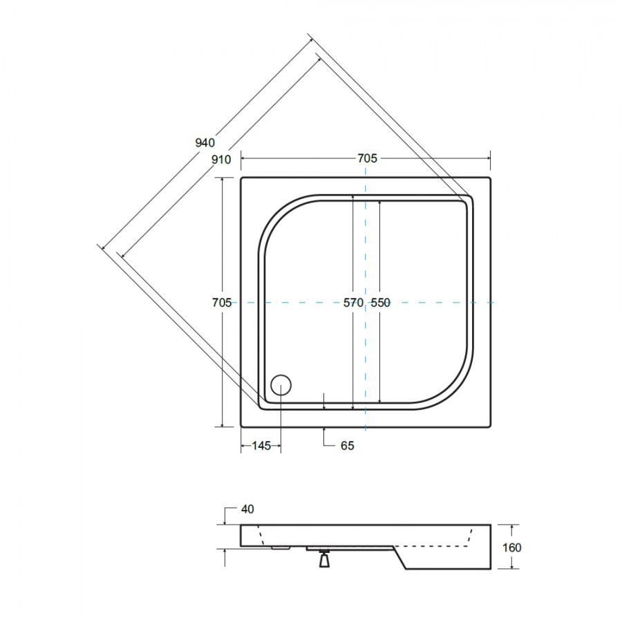 Dane techniczne:- rodzaj produktu: brodzik kwadratowy