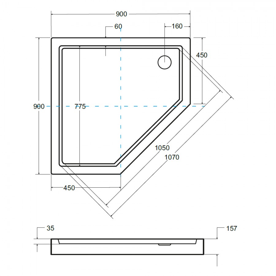 Dane techniczne:- rodzaj produktu: brodzik pięciokątny ze zintegrowaną obudową