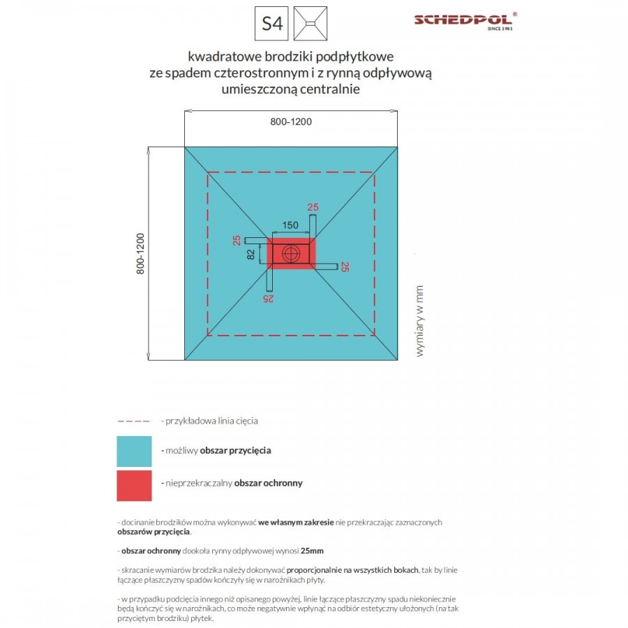 Opis produktu Schedpol Shortline brodzik podpłytkowy 4-spadowy 90x140 cm z rusztem do zabudowy 10012/OP