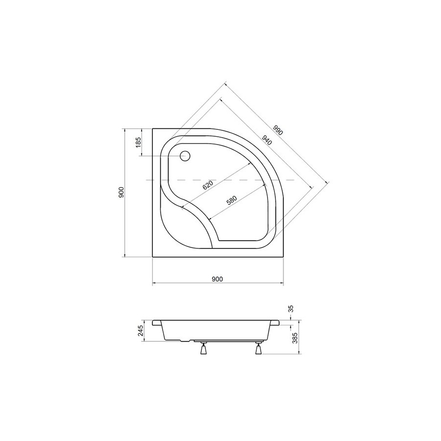 Opis produktu Besco Diper I brodzik półokrągły 90x90 cm BAD-90-NK