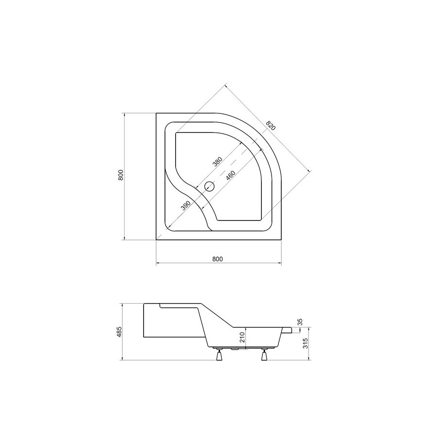 Opis produktu Besco Oliver II brodzik półokrągły 80x80 cm BAO-80-II