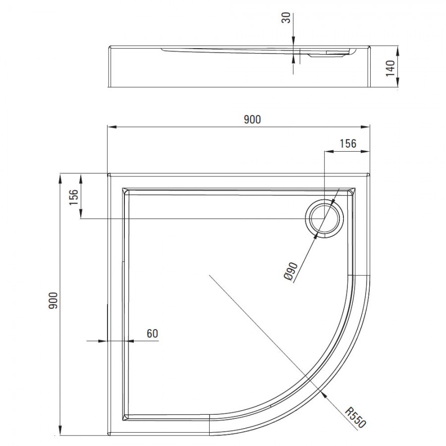 Opis produktu Deante Jasmin brodzik półokrągły 90x90 cm KGJ_053B