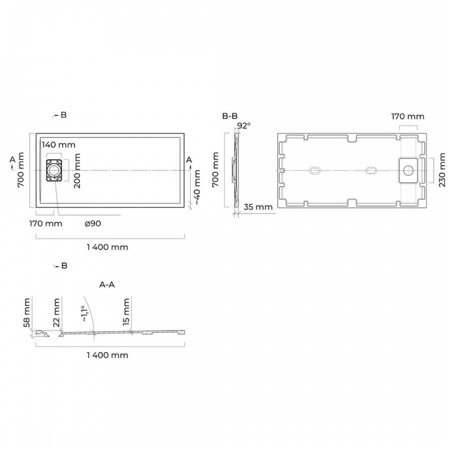- brodzik posiada estetyczną osłonę odpływu wykonaną z tego samego materiału, co brodzik o wymiarach 20x14 cm