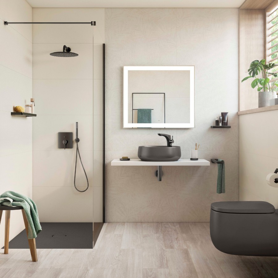 - brodzik płaski ze strukturą antypoślizgową (najwyższa klasa C zgodnie z normą DIN 51097)