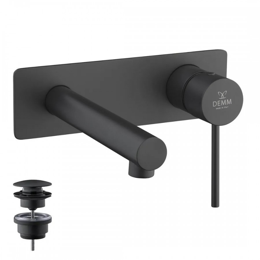 Opis produktu Demm Spike Black bateria umywalkowa podtynkowa wylewka 18 cm z korkiem klik klak czarny mat 6818/K/CZAR