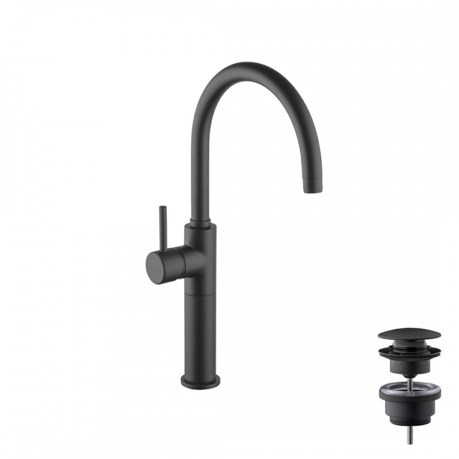 Opis produktu Giulini Giovanni Futuro bateria umywalkowa stojąca wysoka z korkiem czarny mat 6582/K/CZAR