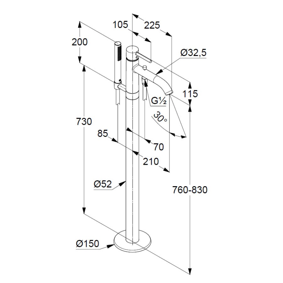 Opis produktu Kludi Bozz bateria wannowa wolnostojąca czarny mat 385903976
