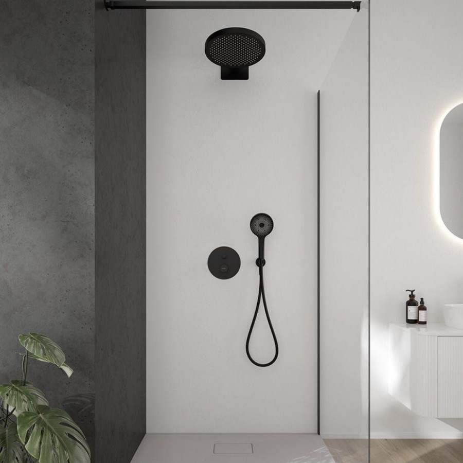 Opis produktu Oltens Vann Krafta deszczownica okrągła 26 cm prysznicowa z ramieniem czarny mat 36039300