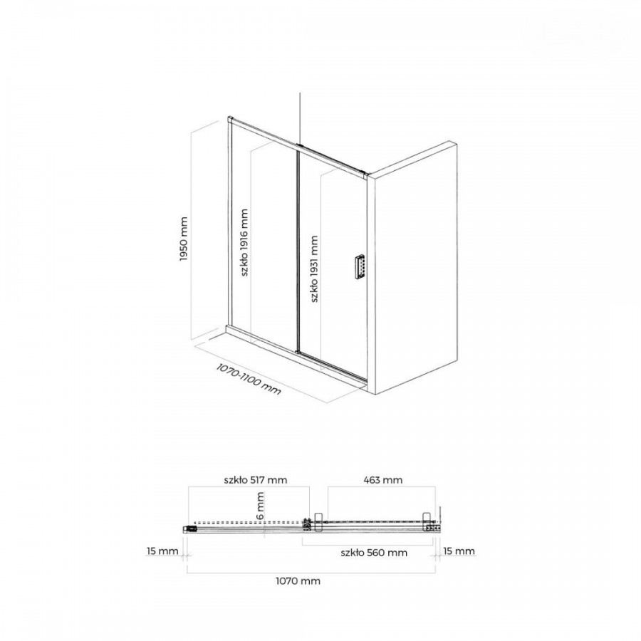 - wymiar rzeczywisty przy montażu we wnęce: 107 - 110 cm