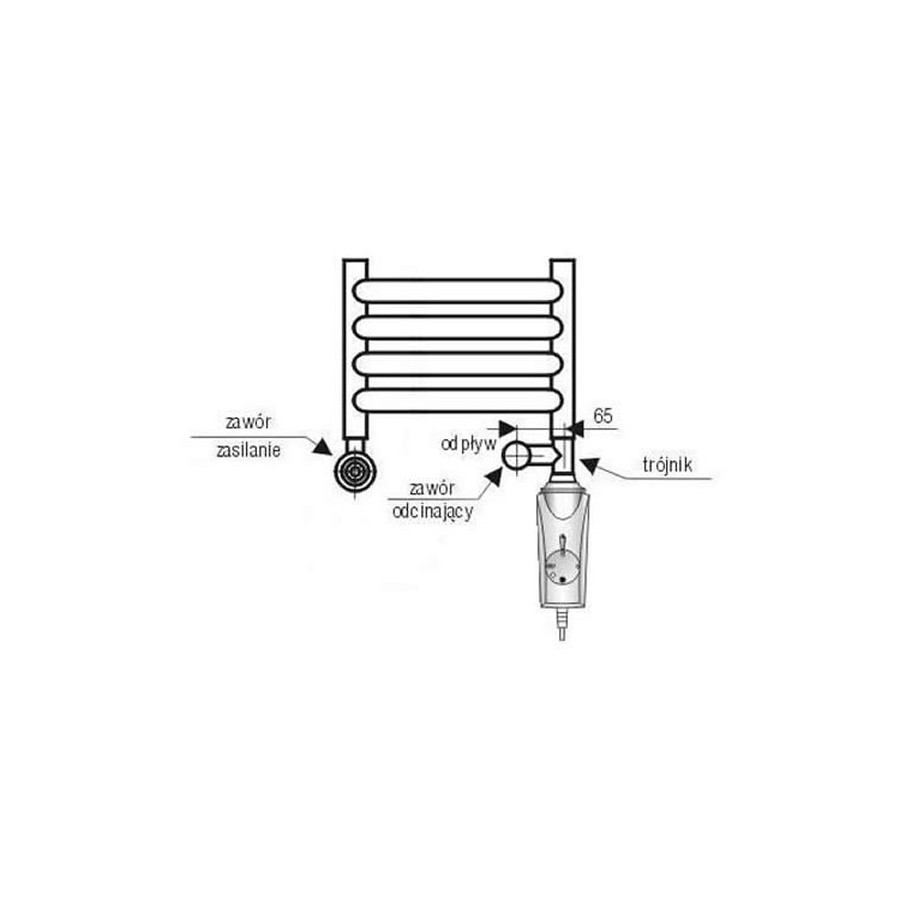 - uwagi : w przypadku montażu z grzejnikiem podłączonym do instalacji c.o. - niezbędny trójnik