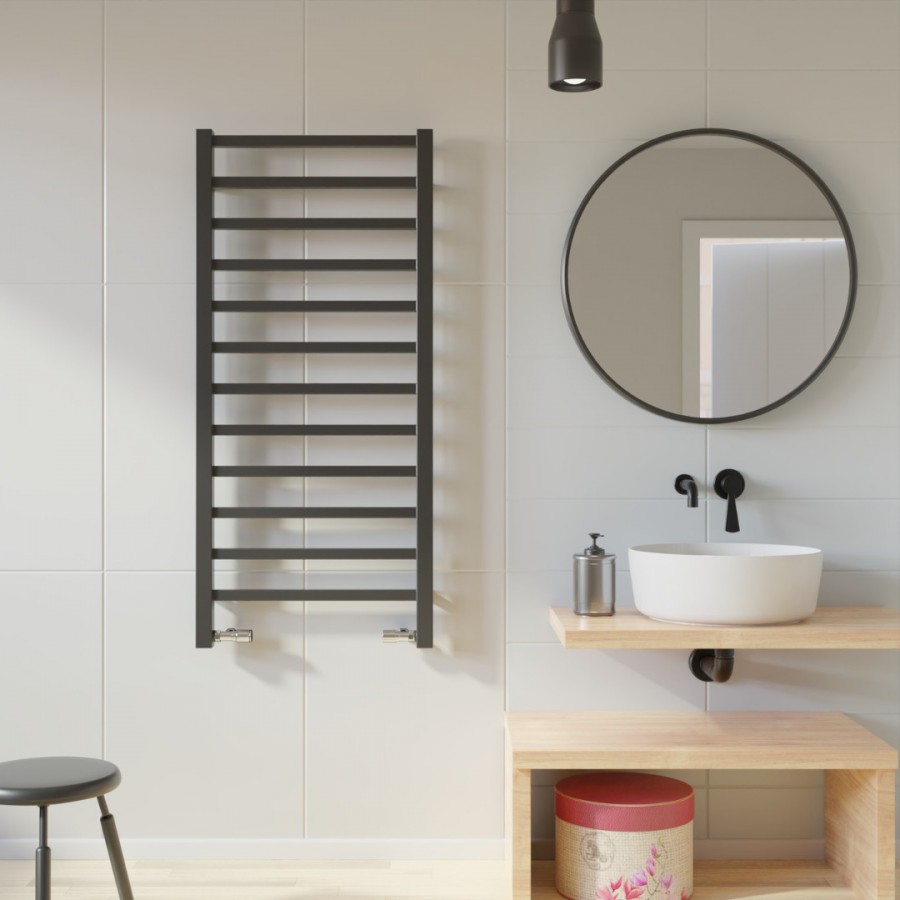 Opis produktu Imers Tell 2 grzejnik łazienkowy 94x43 cm czarny mat 1122/CZM
