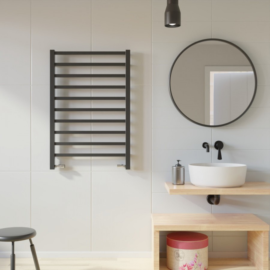 Opis produktu Imers Tell 4 grzejnik łazienkowy 79x53 cm czarny mat 1142/CZM