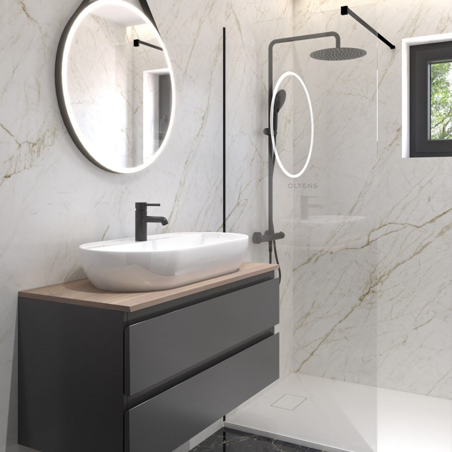 Opis produktu Oltens Bo ścianka prysznicowa Walk-In 110 cm profil czarny mat 22003300