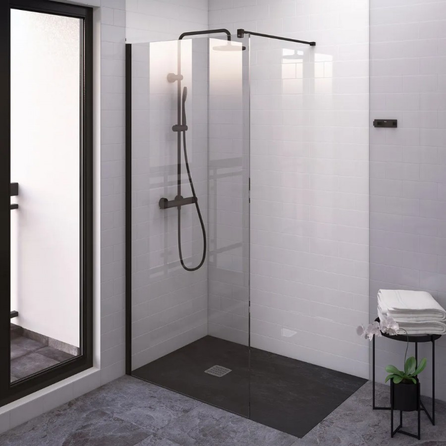 Opis produktu Roca District ścianka prysznicowa Walk-in 100 cm szkło 6 mm czarny mat 52321