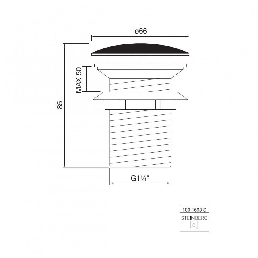 Opis produktu Steinberg seria 100 korek do umywalki bez przelewu czarny mat 100 1693 S