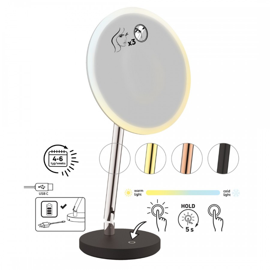 Opis produktu Deante Silia lusterko kosmetyczne z podświetleniem LED czarny mat ADI_N812