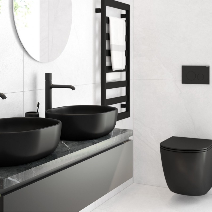 Opis produktu Oltens Hamnes Stille miska WC wisząca PureRim SmartClean czarny mat 42521300
