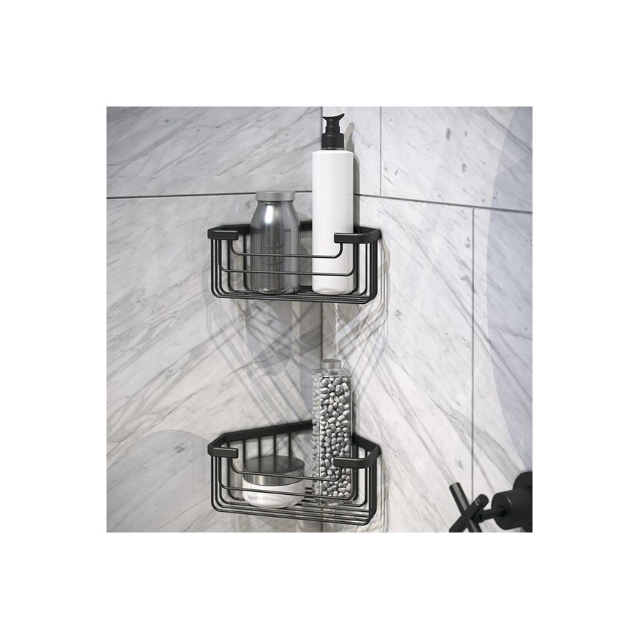 Opis produktu Gedy Koszyk prysznicowy narożny czarny 2483/CZAR