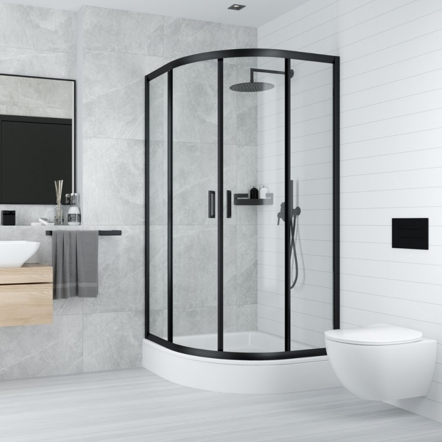 Opis produktu Deante Funkia kabina prysznicowa półokrągła 80 cm czarny mat/szkło przeźroczyste KYP N52K